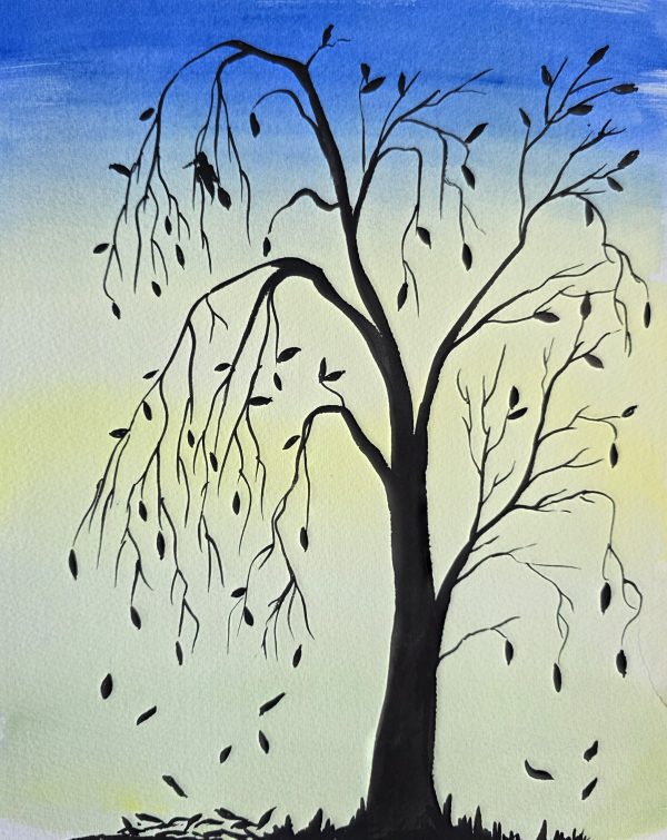 Silhouetted against a bright, sunny sky this tree is just beginning to lose it’s leaves. Can you spot the bird perched in among the branches?