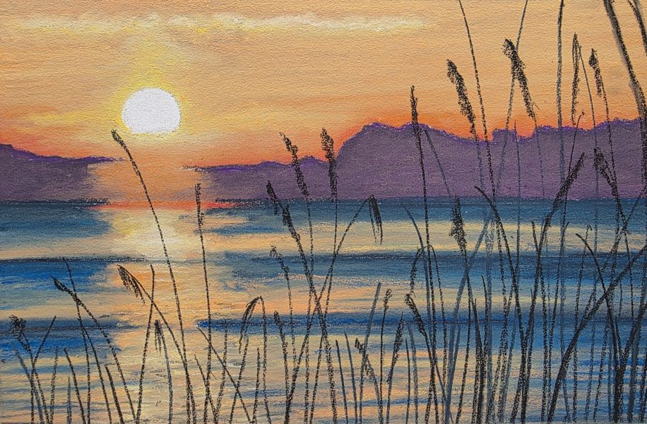 I love painting sunsets, with such glorious colours and interesting light, especially on water. Backgrounds are reduced to silhouettes and foreground features are stark against the burning sunlight.
