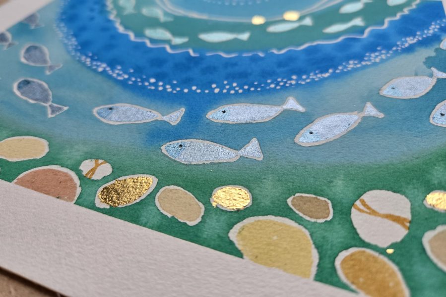 The second in a series of whirlpool artworks, this piece features iridescent paint and 22ct gold leaf details.